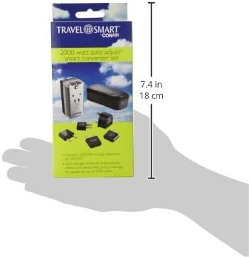 Travel Smart by Conair - Travel Voltage Converter for Worldwide Travel • Hardside/ABS Plastic • Solid state circuitry with High or Low wattage indicator lights • It includes a circuit breaker reset button which corrects accidental overloads • Set includes 5 polarized adapter plugs and zippered travel pouch • Automatically selects low (0-49 watts) for electric shavers, battery chargers, etc. or high setting (50-2000 watts) for irons, hair dryers, etc.