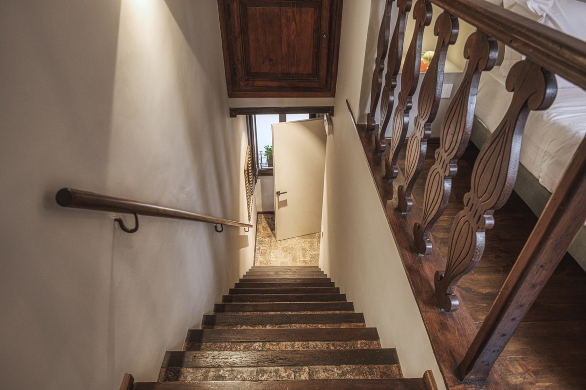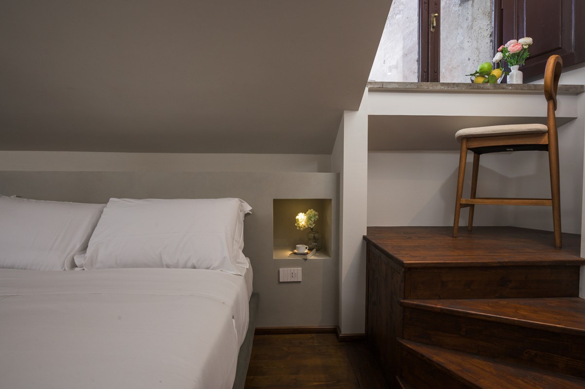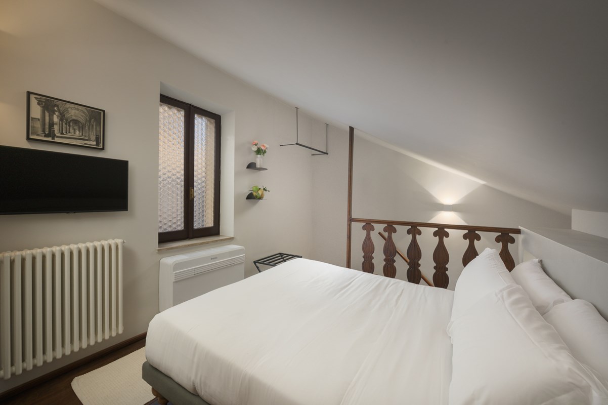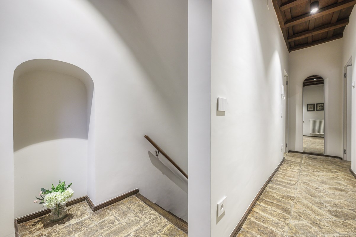 LOCATION Rome, Italy APARTMENT DESCRIPTION Located right in the heart of Rome, this charming, well positioned apartment is spread over three floors, with a total of two double bedrooms and three bathrooms that can comfortably accommodate up to four guests. Upon entering the apartment, on the left side you will find a living area with armchairs, great for kicking back and relaxing after a full day of exploring Rome. There is also a fully equipped kitchen and dining area complete with all amenities you might need for making a delicious meal. On this level there is also a convenient guest bathroom. From here, a staircase leads down to a lower level with a cozy lounge area with a TV awaits—another great spot for relaxing and rejuvenating. From the entrance on the ground floor, stairs lead up to the first floor, where you will find one double bedroom with an en-suite bathroom featuring a shower. Continuing on up to the second floor, you will find a charming attic-style double bedroom with a private bathroom that is located just outside the bedroom. This bathroom also has a shower. The apartment is equipped with all amenities that will ensure that your stay is a comfortable one. All details have been curated with care, and the elegant style and design will make for a memorable stay. The property has air conditioning and heating, so you will be comfortable regardless of the season. The central position of the property means you are just a short walk from many of the city's major sites, such as the Colosseum. This will be the perfect home base for your Roman holiday adventure!